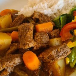 Viene con arroz, frijoles y ensalada